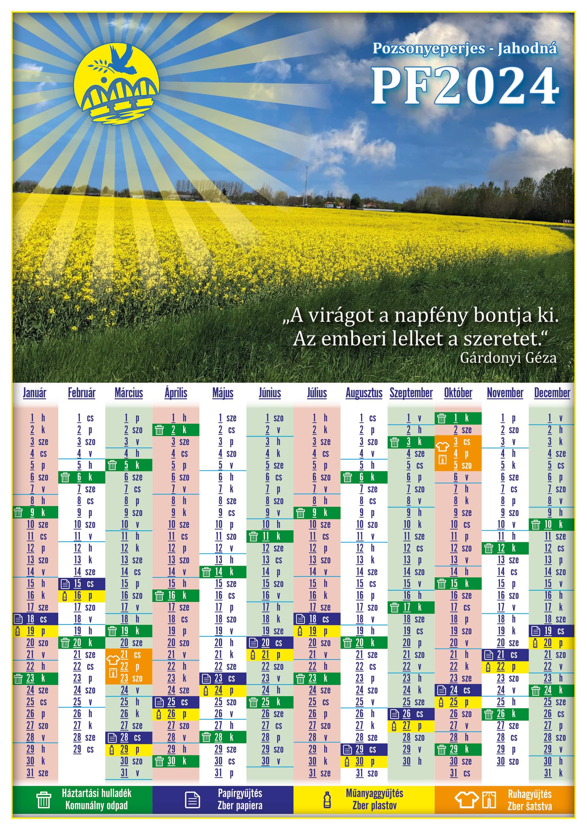 Kalandár odvozu odpadu 2024