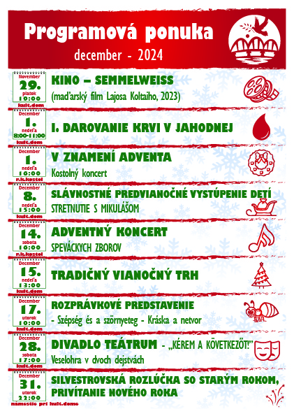 Srdečne pozývame obyvateľov obce Jahodná na decembrové programy.